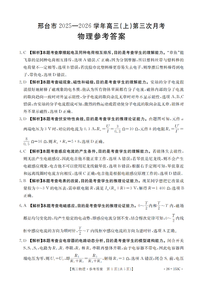 河北省邢台市2025-2026学年高三(上)第三次月考 物理答案.pdf
