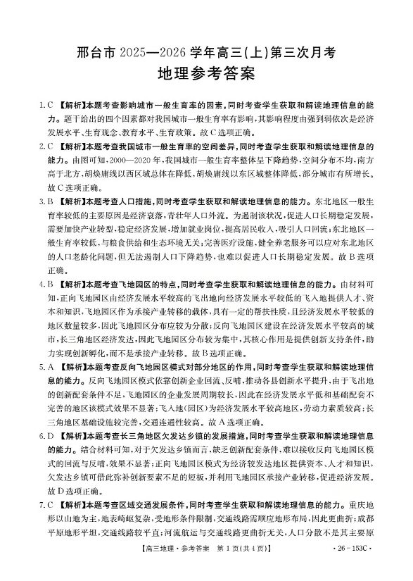 河北省邢台市2025-2026学年高三(上)第三次月考 地理答案.pdf