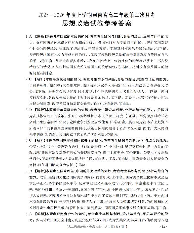 河南省2025-2026年度高二年级上学期第三次月考试卷 政治答案.pdf