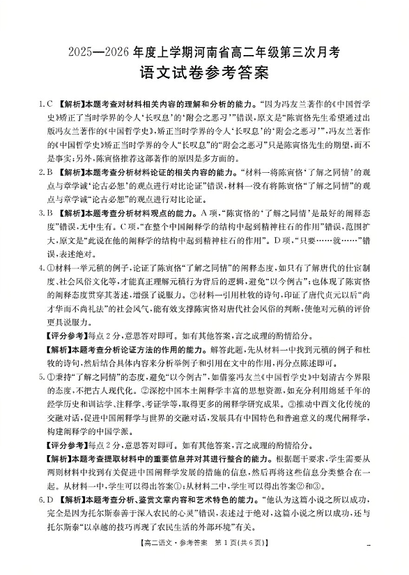 河南省2025-2026年度高二年级上学期第三次月考试卷 语文答案.pdf