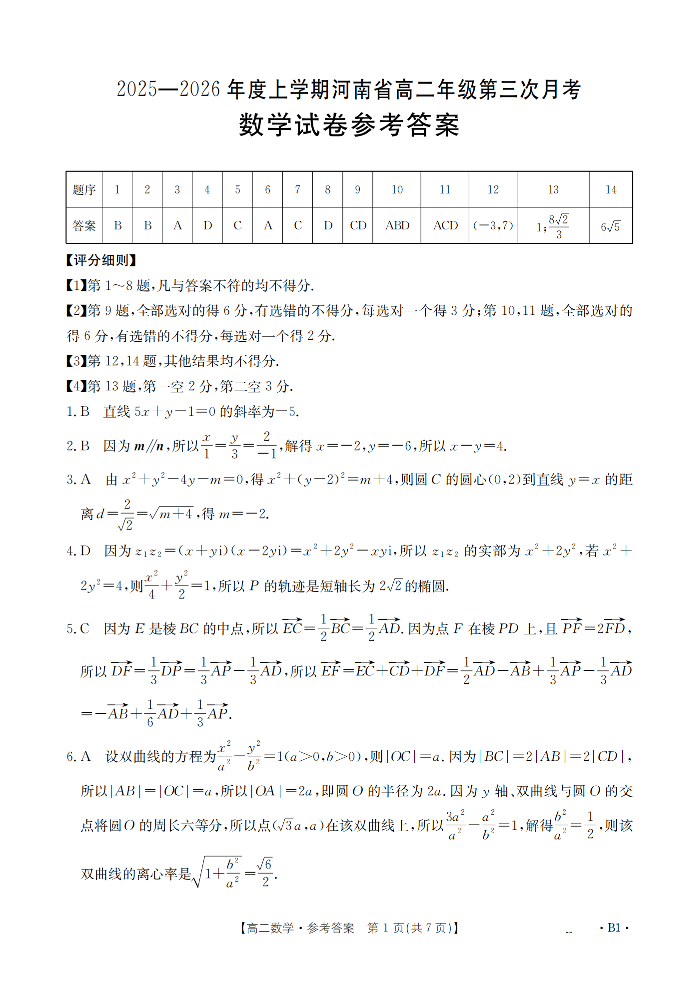 河南省2025-2026年度高二年级上学期第三次月考试卷 数学答案.pdf
