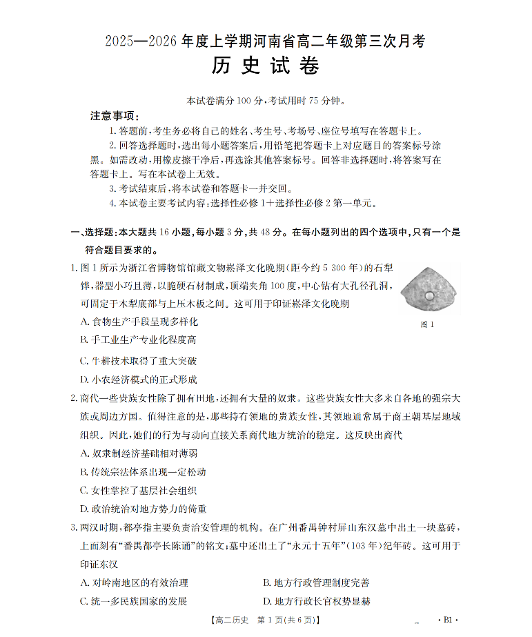 河南省2025-2026年度高二年级上学期第三次月考试卷 历史.pdf