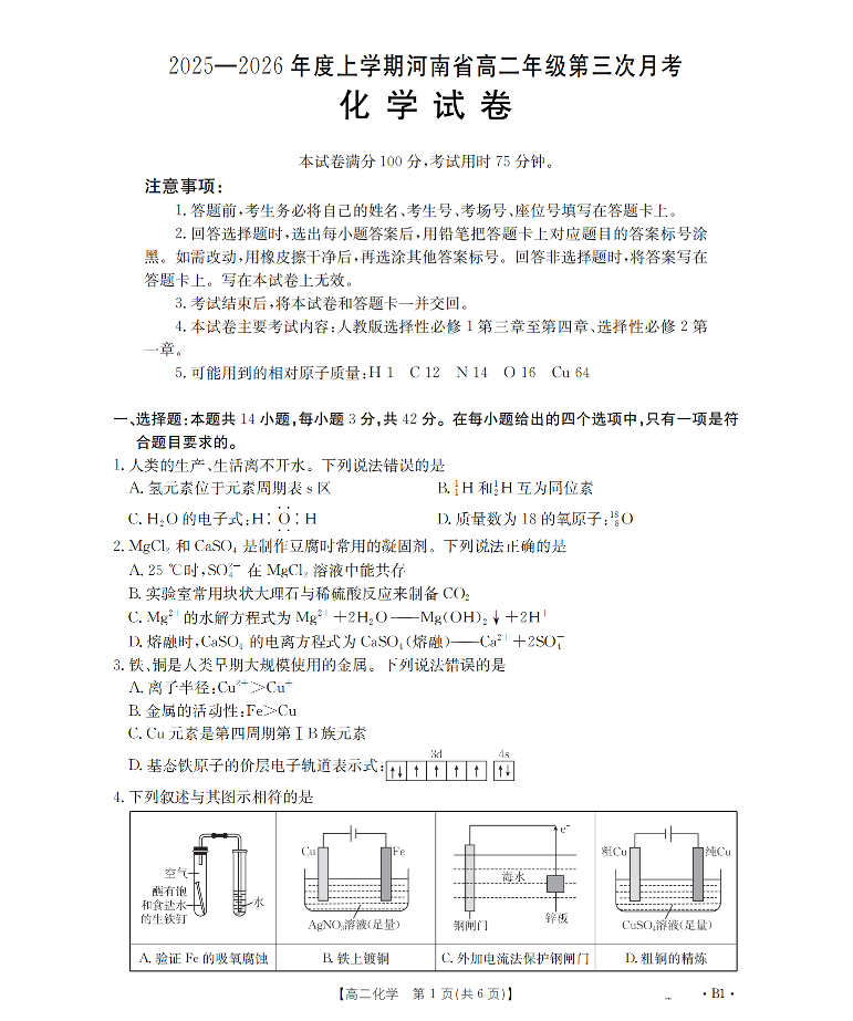 河南省2025-2026年度高二年级上学期第三次月考试卷 化学.pdf