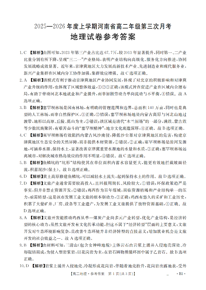 河南省2025-2026年度高二年级上学期第三次月考试卷 地理答案.pdf