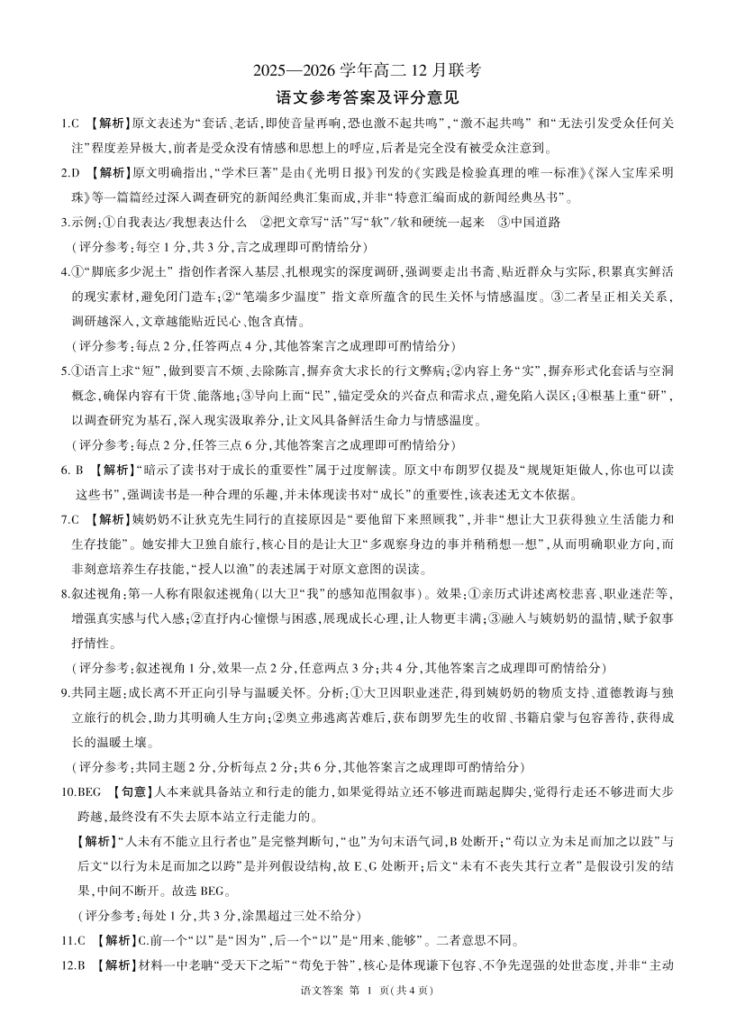 河南省百师联盟2027届高二上学期12月联考 语文答案.pdf
