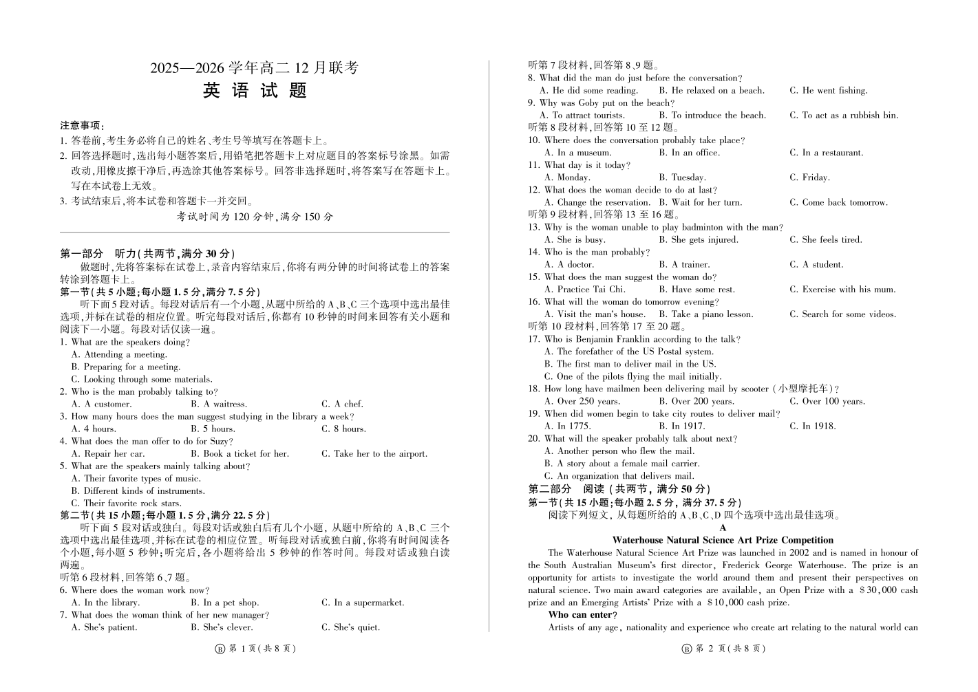 河南省百师联盟2027届高二上学期12月联考 英语(B卷).pdf