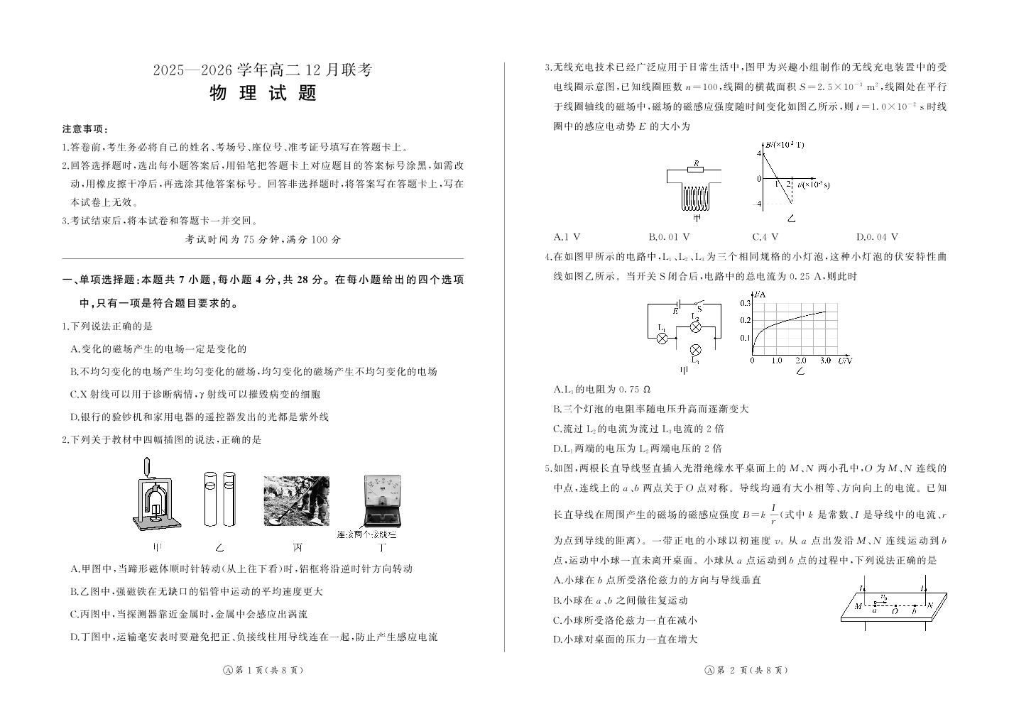 河南省百师联盟2027届高二上学期12月联考 物理(A卷).pdf