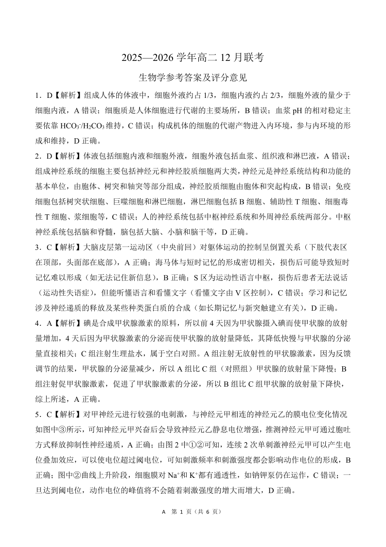 河南省百师联盟2027届高二上学期12月联考 生物(A卷)答案.pdf