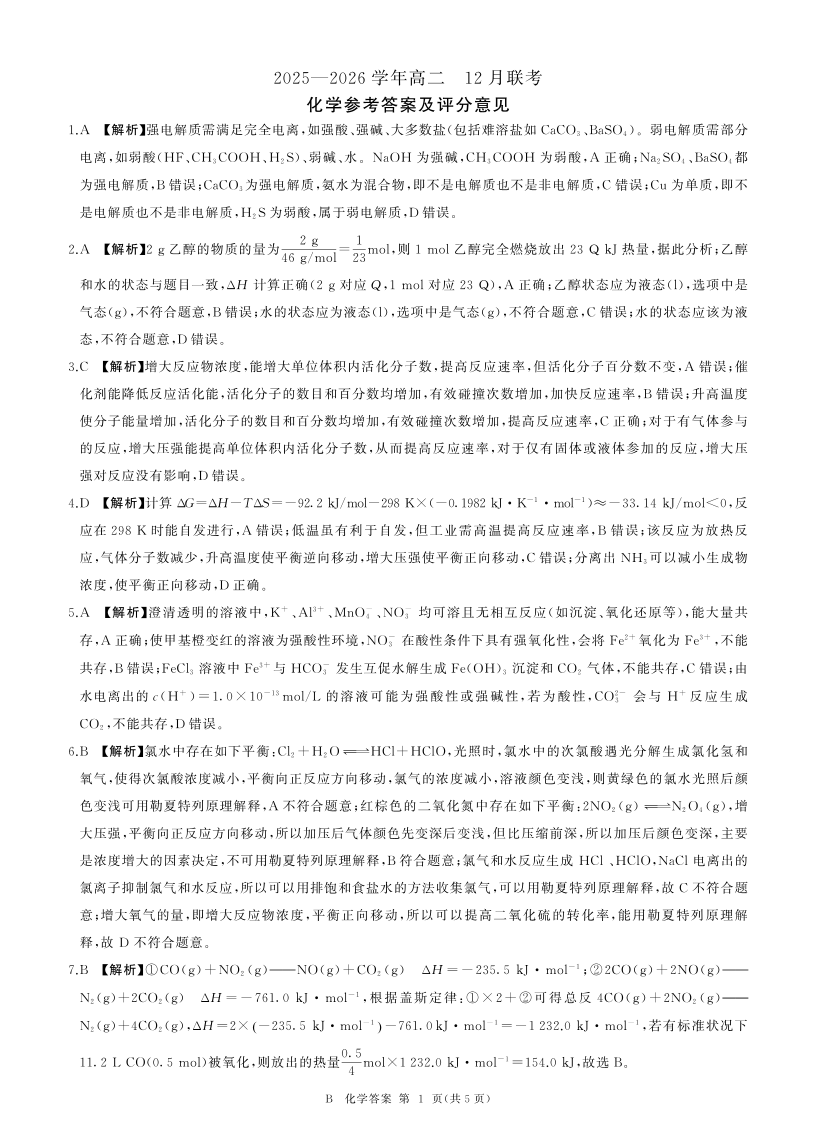 河南省百师联盟2027届高二上学期12月联考 化学(B卷)答案.pdf