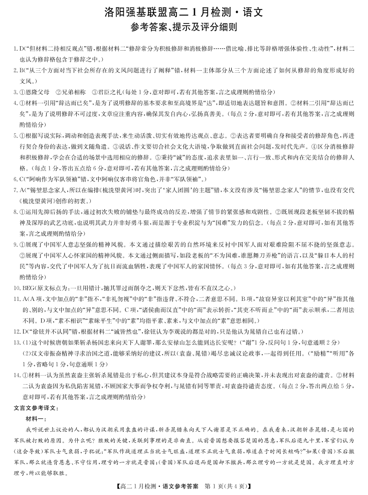 河南省洛阳强基联盟2025-2026学年高二1月检测 语文答案.pdf