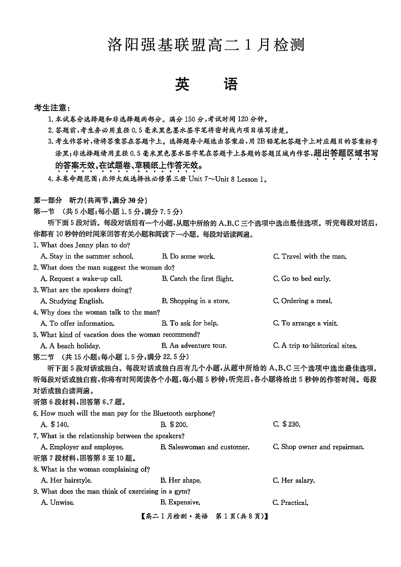 河南省洛阳强基联盟2025-2026学年高二1月检测 英语.pdf
