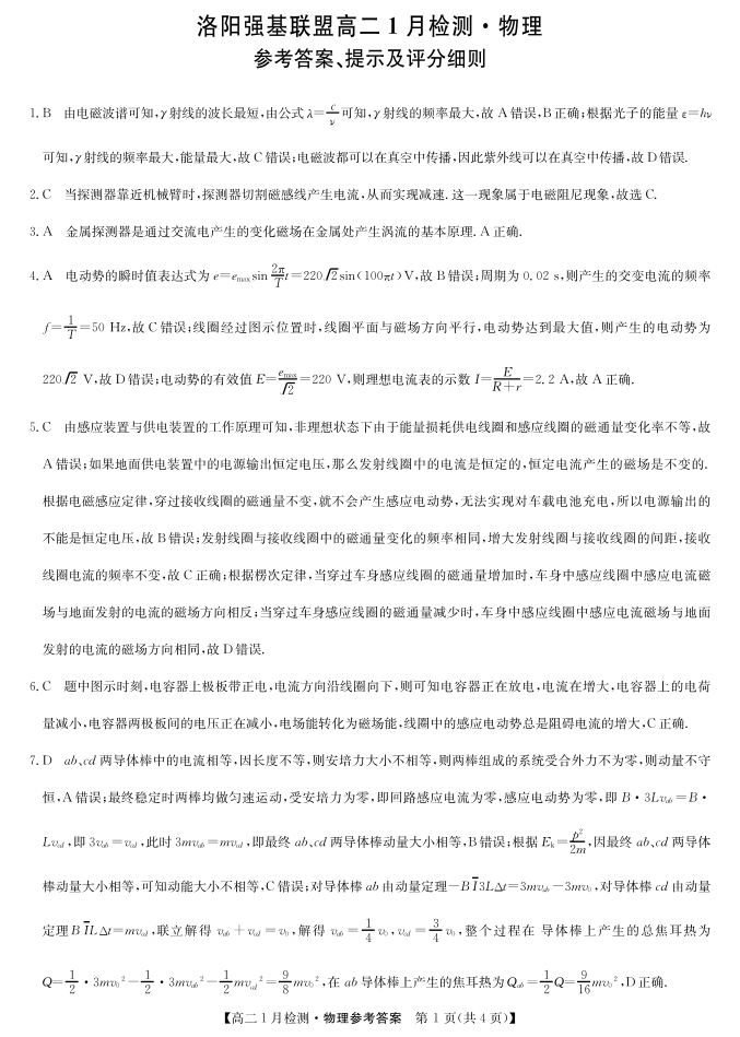 河南省洛阳强基联盟2025-2026学年高二1月检测 物理答案.pdf