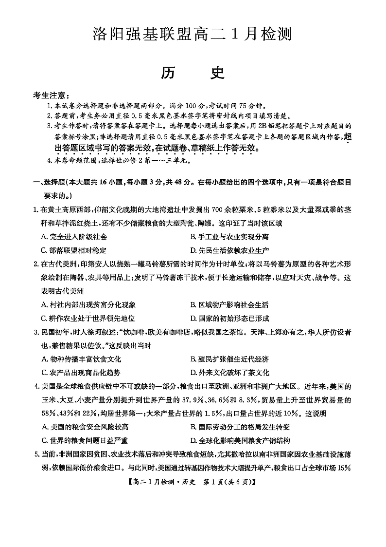 河南省洛阳强基联盟2025-2026学年高二1月检测 历史.pdf