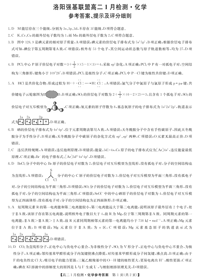 河南省洛阳强基联盟2025-2026学年高二1月检测 化学答案.pdf