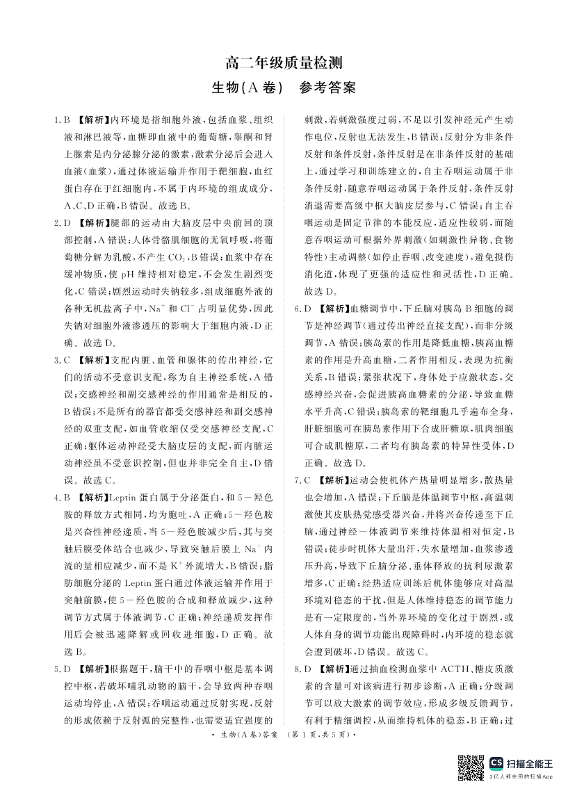 河南省青桐鸣大联考2026年高二年级上学期1月质量检测 生物(A卷)答案.pdf