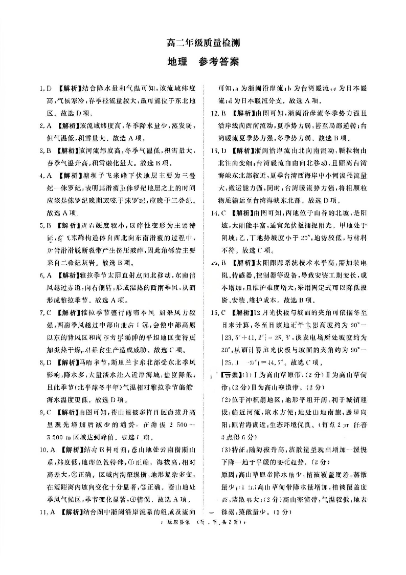 河南省青桐鸣大联考2026年高二年级上学期1月质量检测 地理答案.pdf