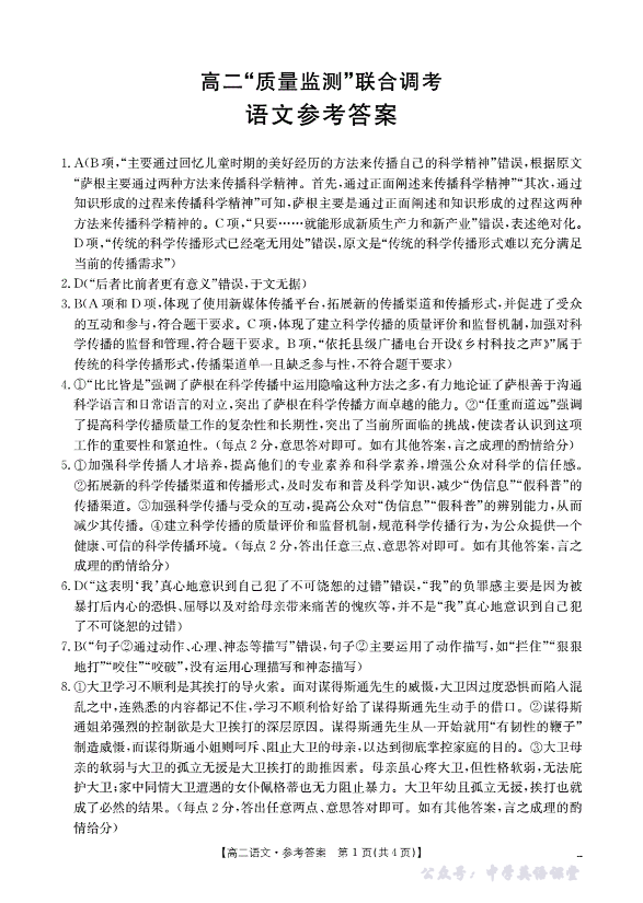 山东省2025-2026学年高二上学期“质量监测”联合调考 语文答案.pdf