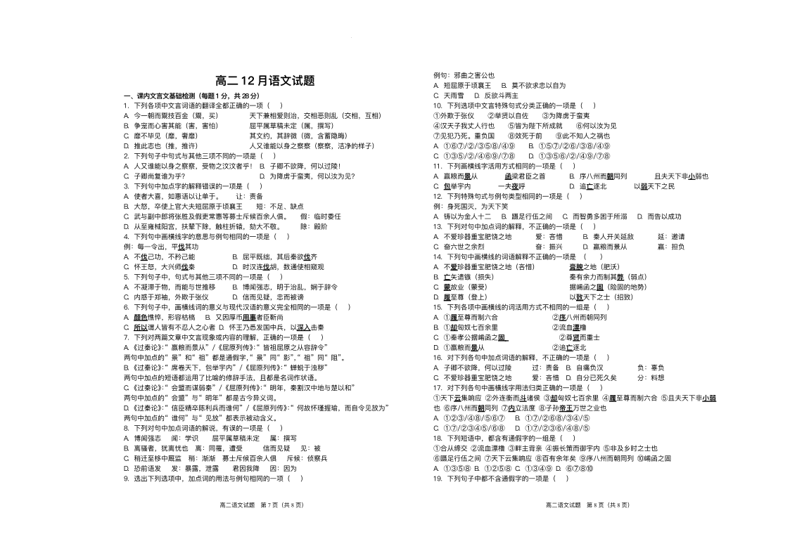 山东省菏泽第一中学(八一路校区)2025-2026学年高二上学期12月测试 语文试题(含答案).pdf