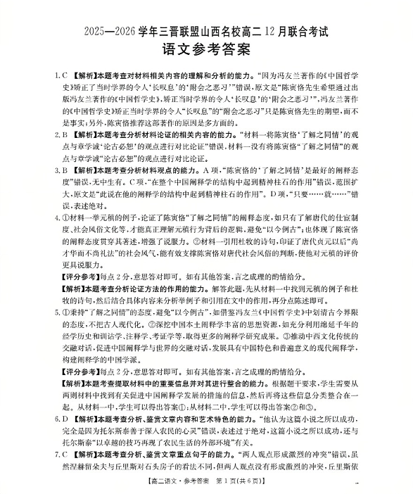 山西省名校三晋联盟2025-2026学年高二12月联合考试 语文答案.pdf