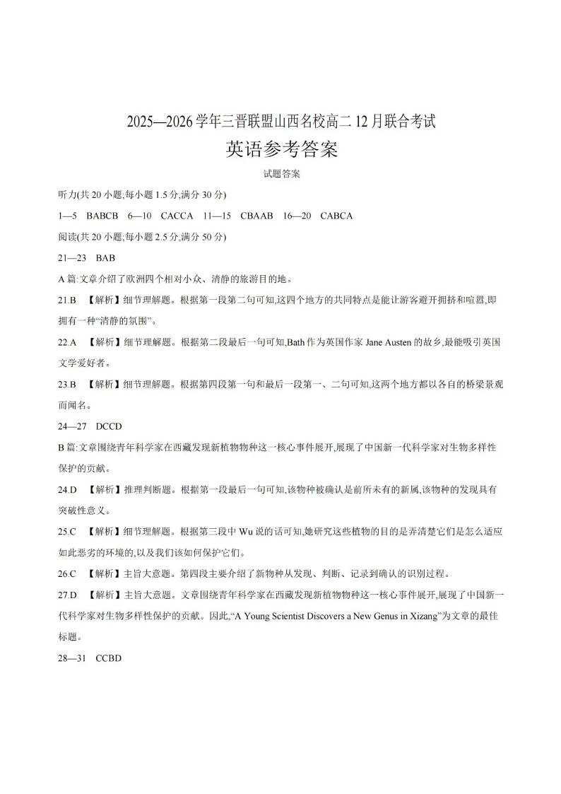 山西省名校三晋联盟2025-2026学年高二12月联合考试 英语答案.pdf