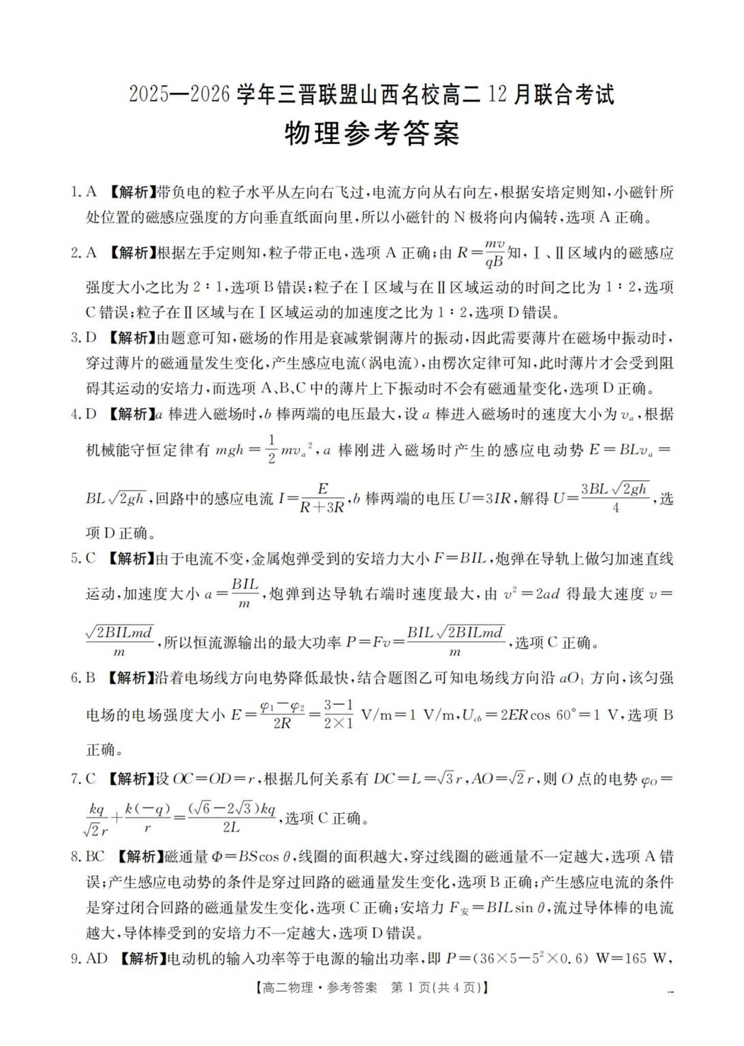 山西省名校三晋联盟2025-2026学年高二12月联合考试 物理答案.pdf