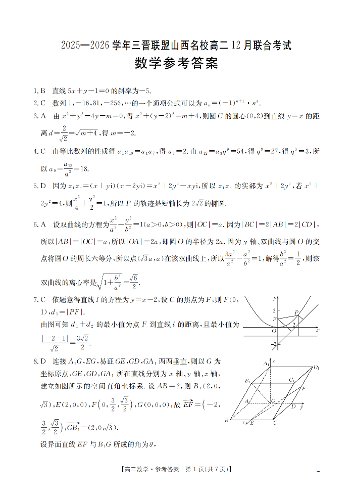 山西省名校三晋联盟2025-2026学年高二12月联合考试 数学答案.pdf