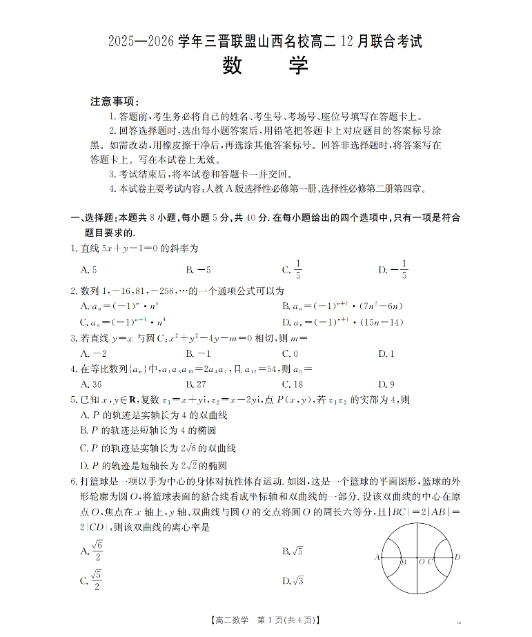 山西省名校三晋联盟2025-2026学年高二12月联合考试 数学.pdf