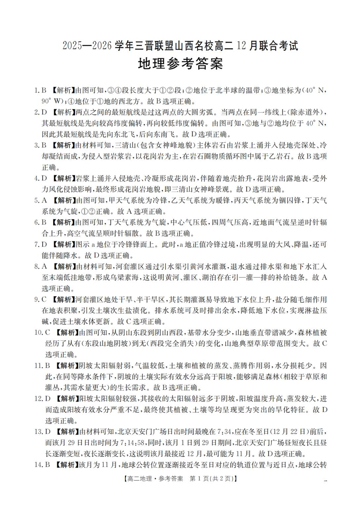 山西省名校三晋联盟2025-2026学年高二12月联合考试 地理答案.pdf