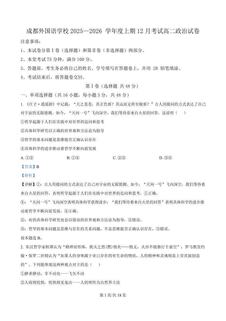 成都市外国语学校2025-2026学年度高二年级12月月考 政治答案.pdf
