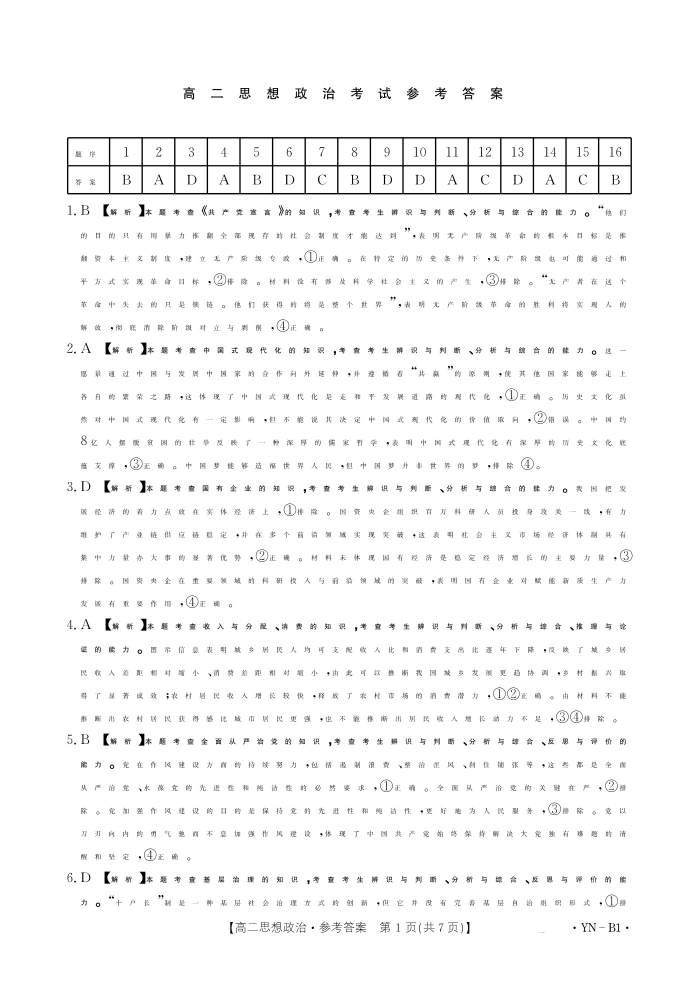 云南省2027届高二上学期12月联考 政治B1答案.pdf
