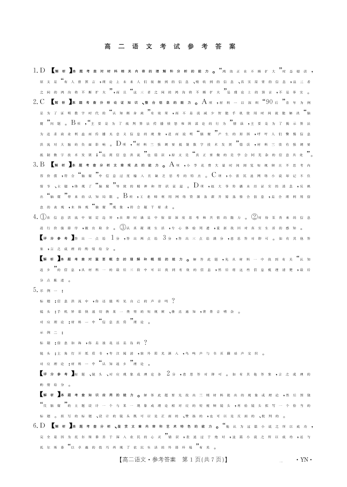 云南省2027届高二上学期12月联考 语文答案.pdf