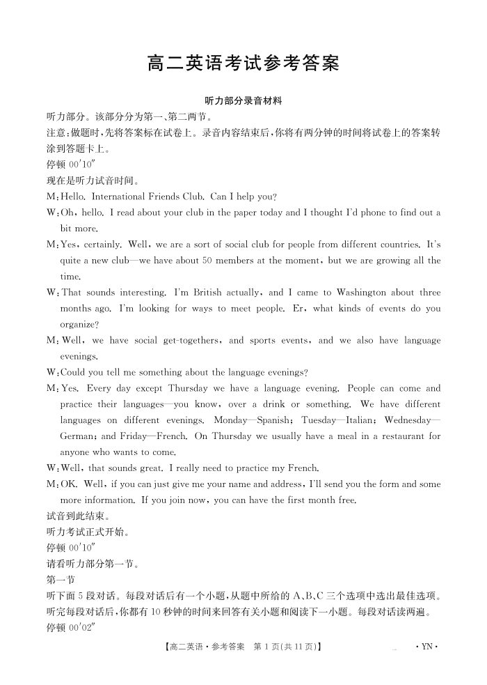云南省2027届高二上学期12月联考 英语答案.pdf