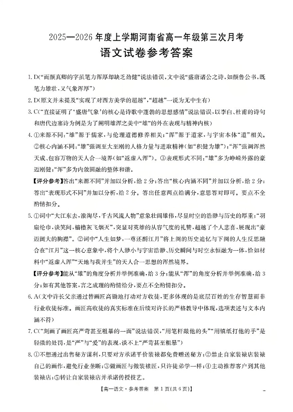 河南省2025-2026年度高一年级上学期第三次月考试卷 语文答案.pdf