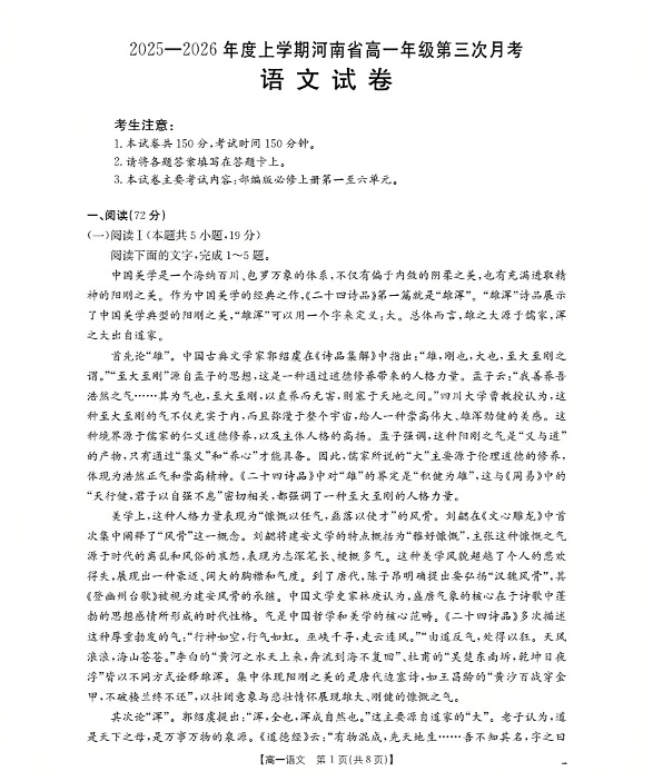 河南省2025-2026年度高一年级上学期第三次月考试卷 语文.pdf