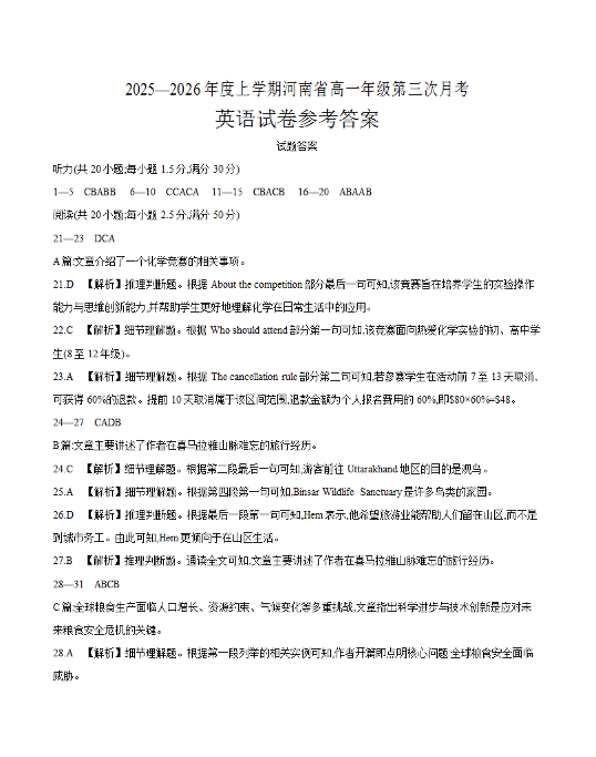 河南省2025-2026年度高一年级上学期第三次月考试卷 英语答案.pdf