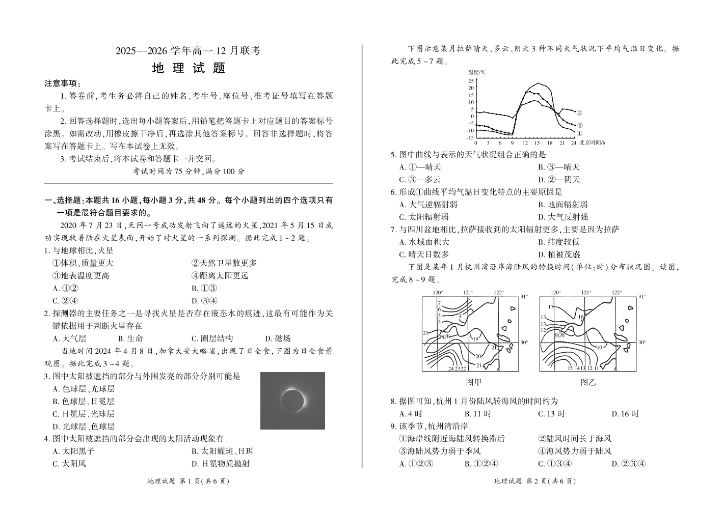 河南省百师联盟2028届高一上学期12月联考 地理.pdf