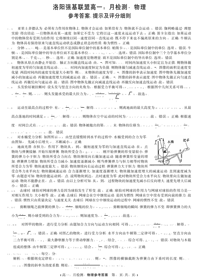 河南省洛阳强基联盟2025-2026学年高一1月检测 物理答案.pdf