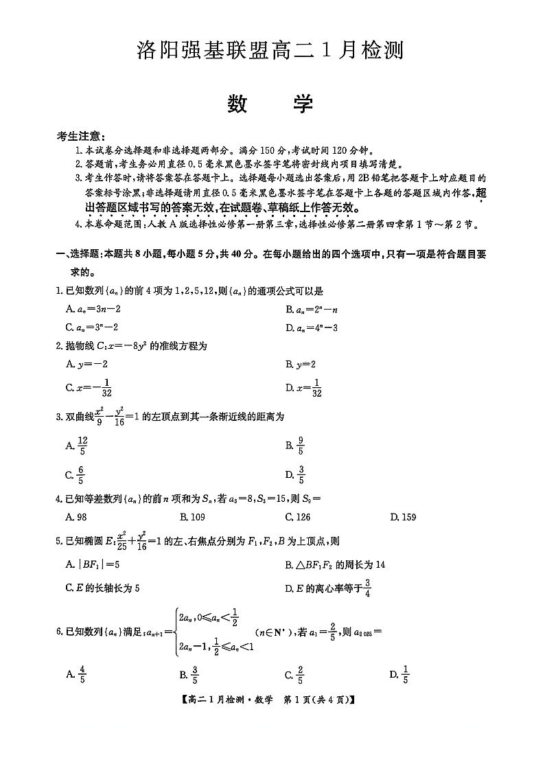 河南省洛阳强基联盟2025-2026学年高一1月检测 数学.pdf