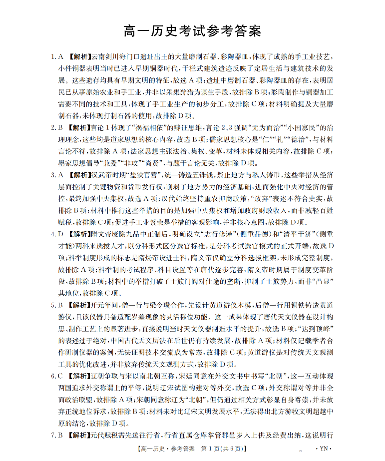 云南省2028届高一上学期12月联考 历史答案.pdf