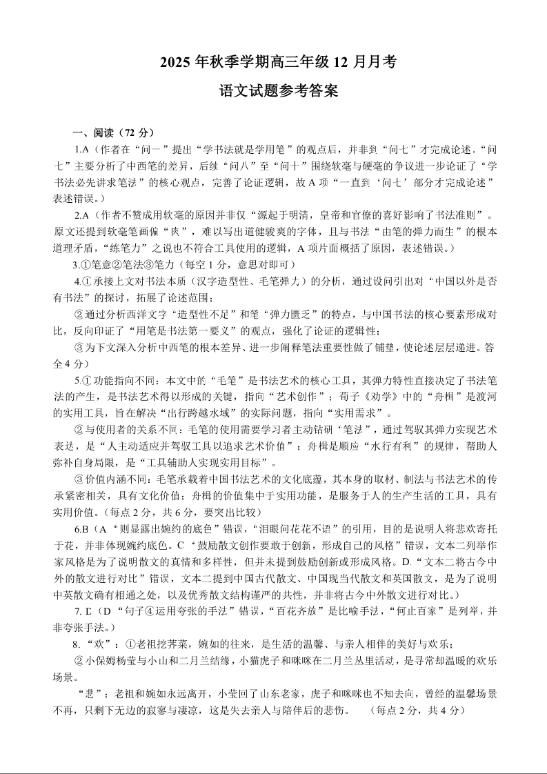 湖北省荆州中学2025-2026学年高三上学期12月月考 语文答案.docx