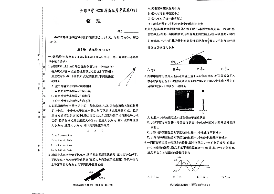 长郡中学2026届高三月考试卷(四)物理.pdf