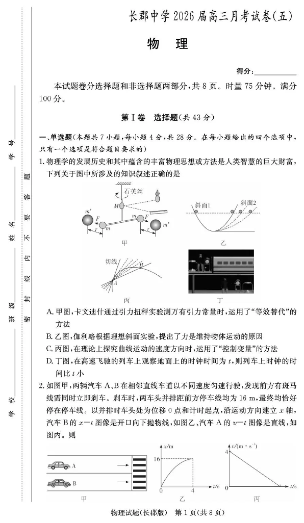 长郡中学2026届高三月考试卷(五)物理.pdf