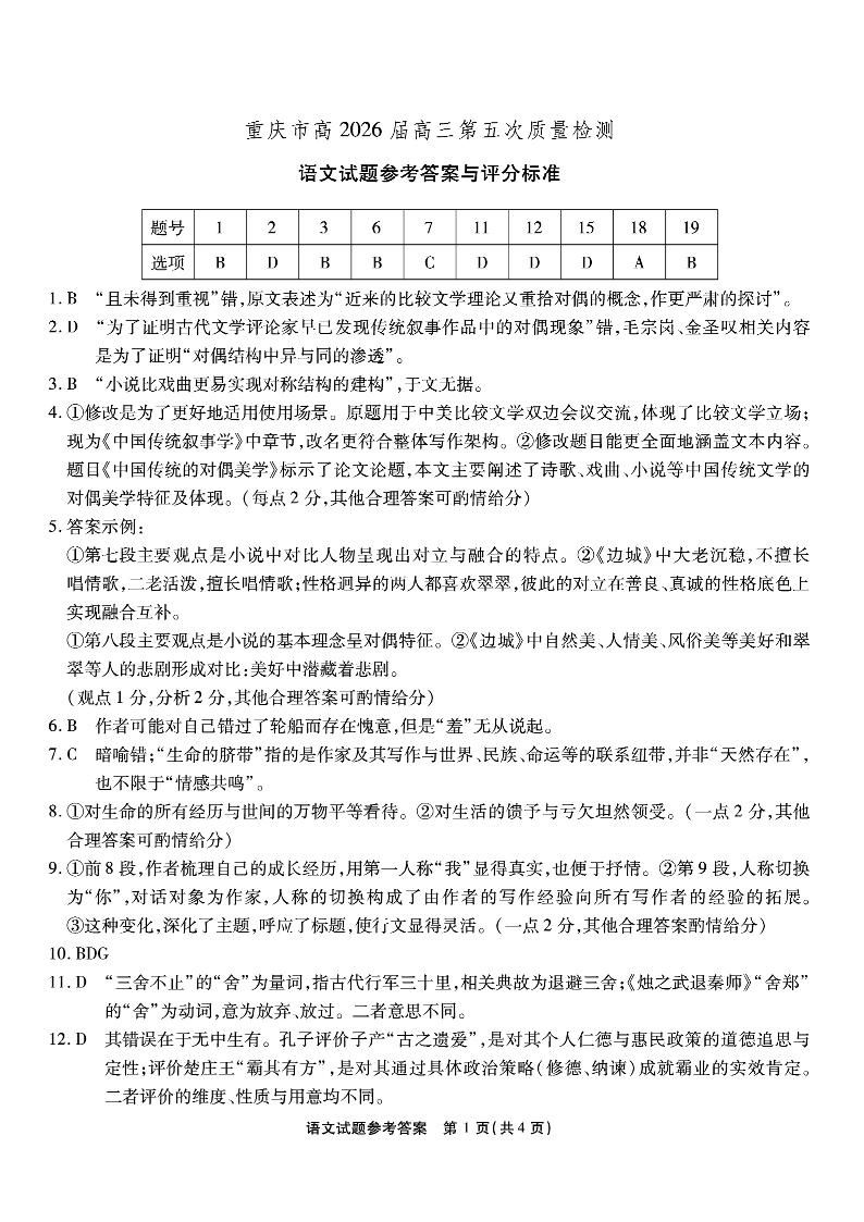 重庆市南开中学高2026届高三第五次质量检测 语文答案.pdf