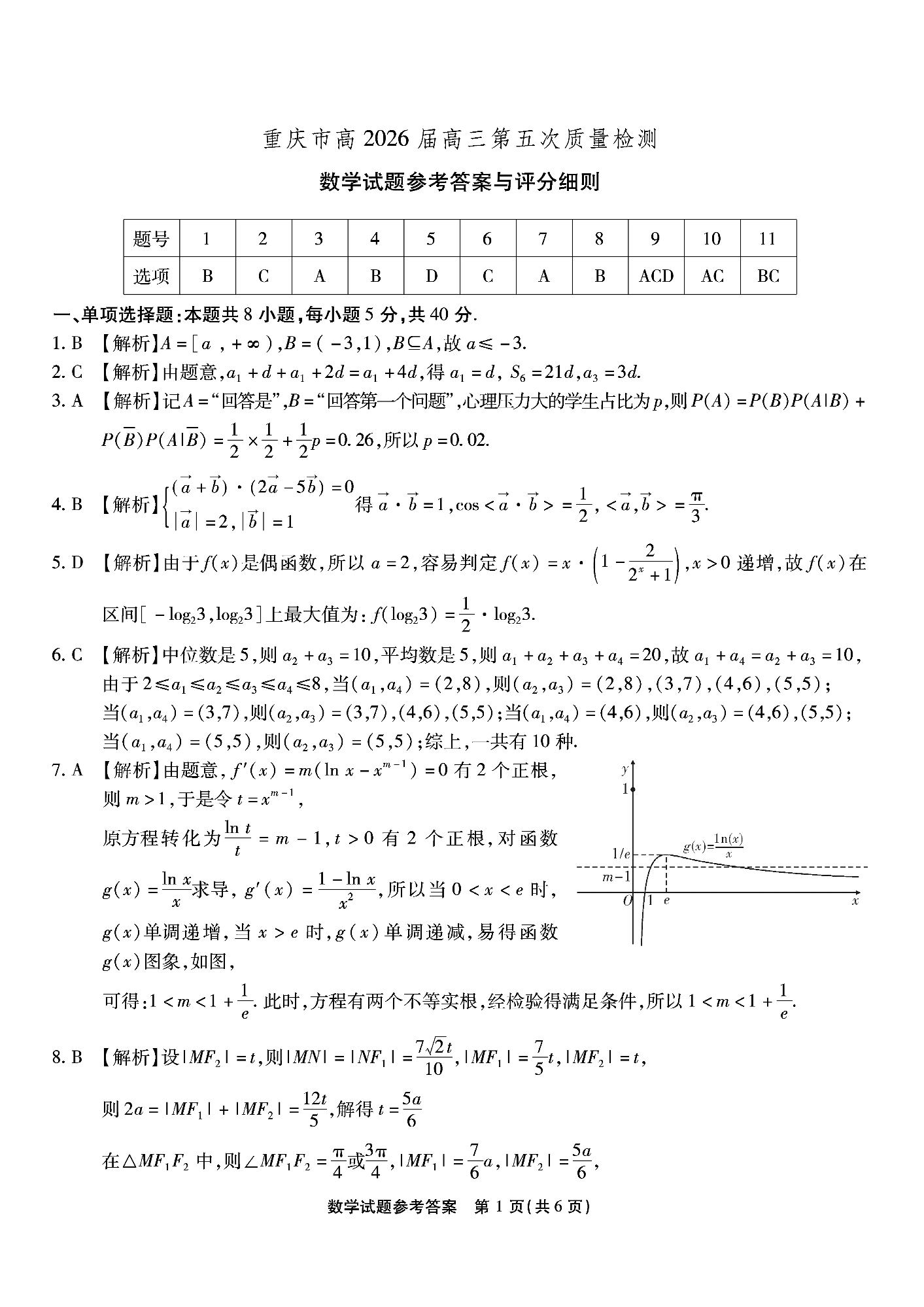 重庆市南开中学高2026届高三第五次质量检测 数学答案.pdf