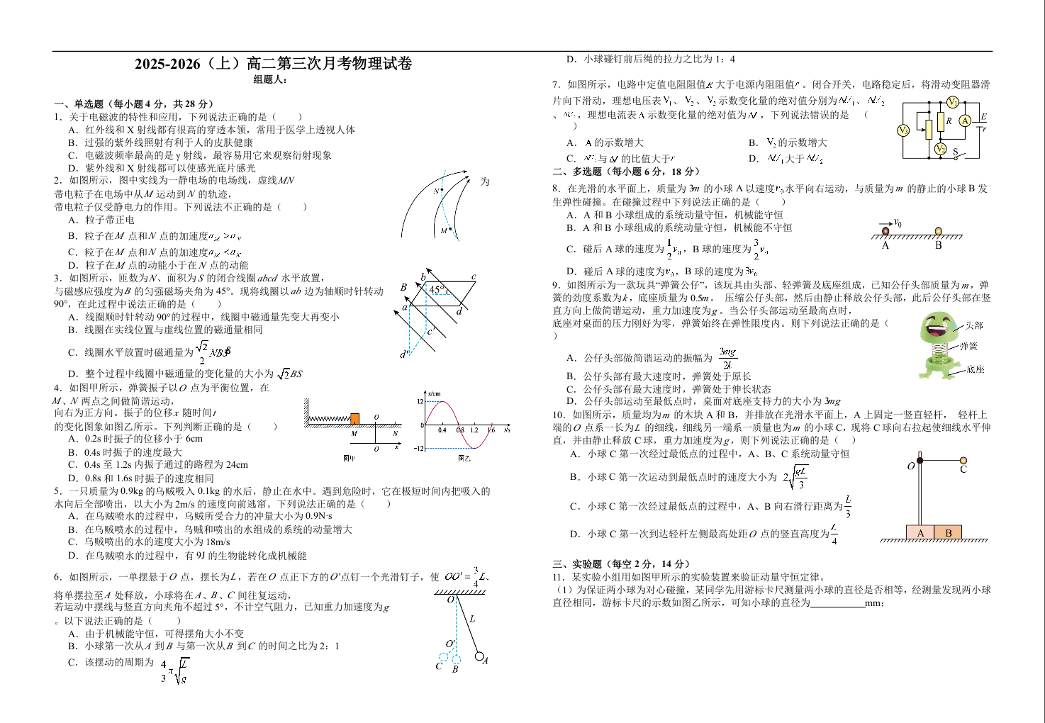 江西省宜春市宜丰中学2025-2026学年高二上学期12月月考 物理试题(含答案).docx