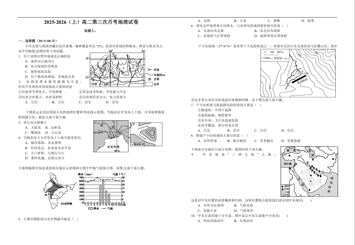 江西省宜春市宜丰中学2025-2026学年高二上学期12月月考 地理试题(含答案).docx