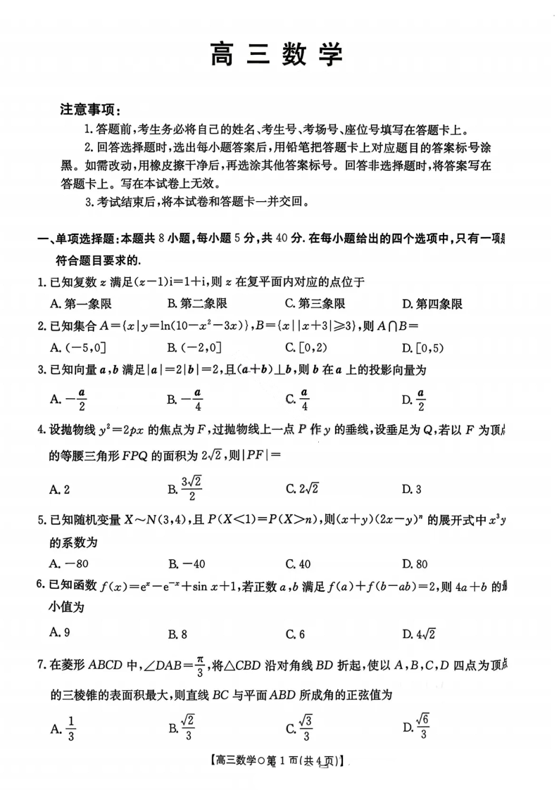 湖南省部分市、县级优质高中协作体2026届高三元月联考 数学.pdf
