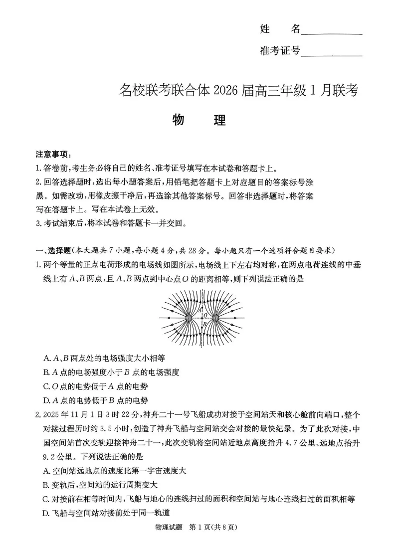 湖南省名校联考联合体2026届高三年级1月期末联考 物理.pdf