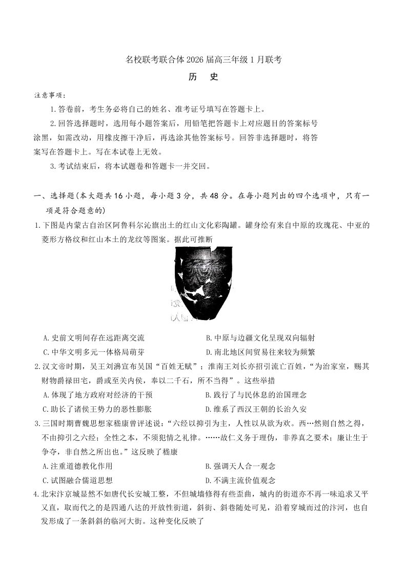 湖南省名校联考联合体2026届高三年级1月期末联考 历史.pdf