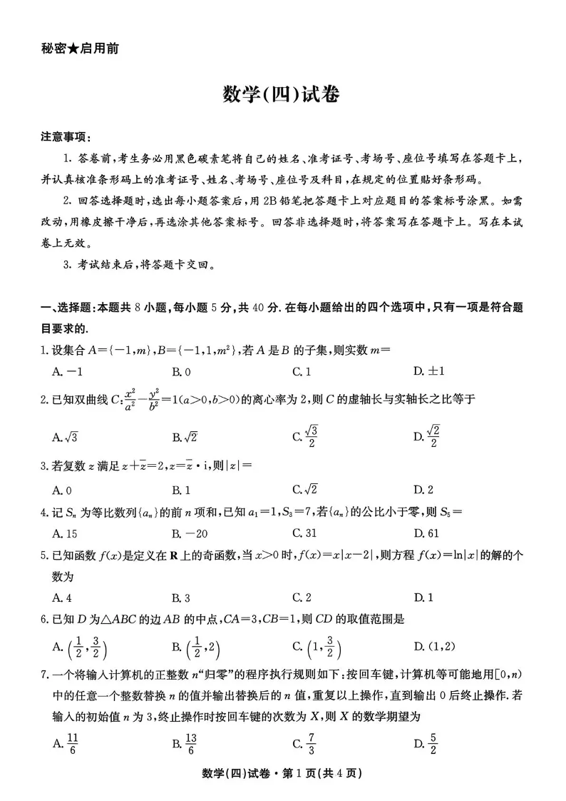 云南省名校联盟2026届高三上学期第四次联考 数学.pdf